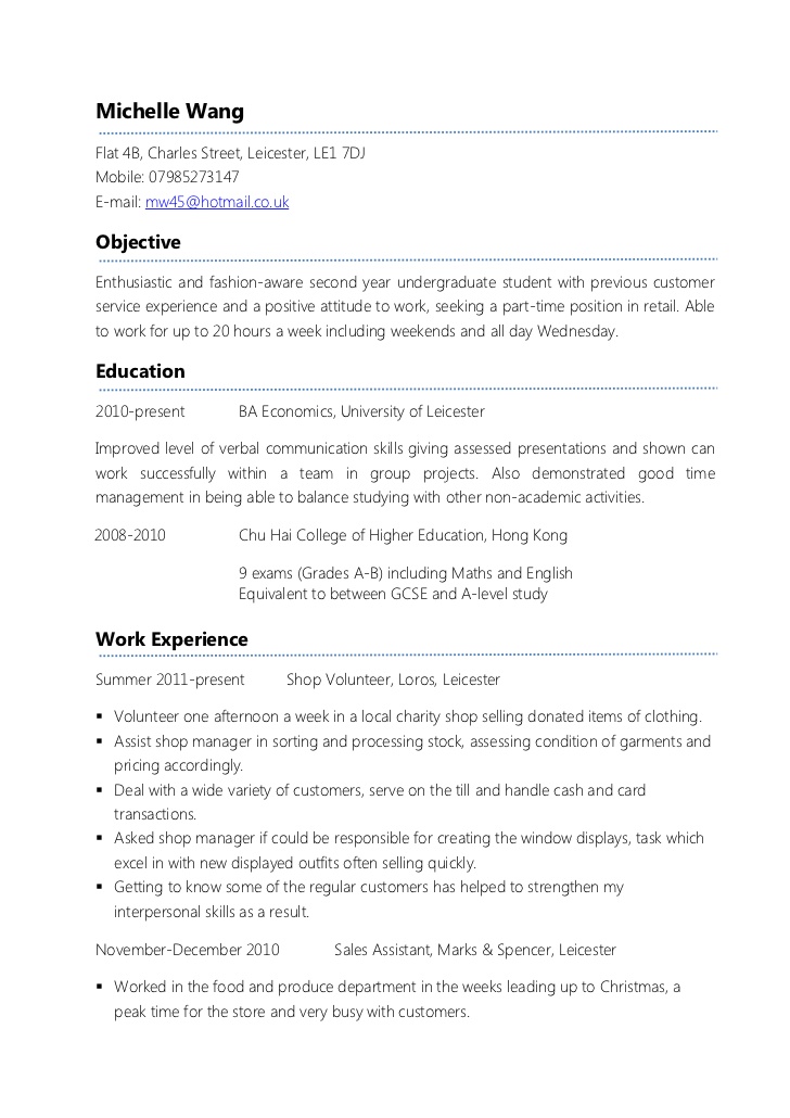 Sales Assistant Cv Example Shop Store Resume Retail